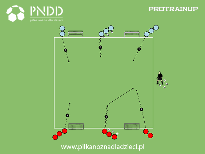 Gra pochodzi ze zbioru konspektów dla żaków (U9), choć generalnie wszystkie gry na 4 bramki w takiej liczebności można wykorzystać także w orlikach i młodzikach.