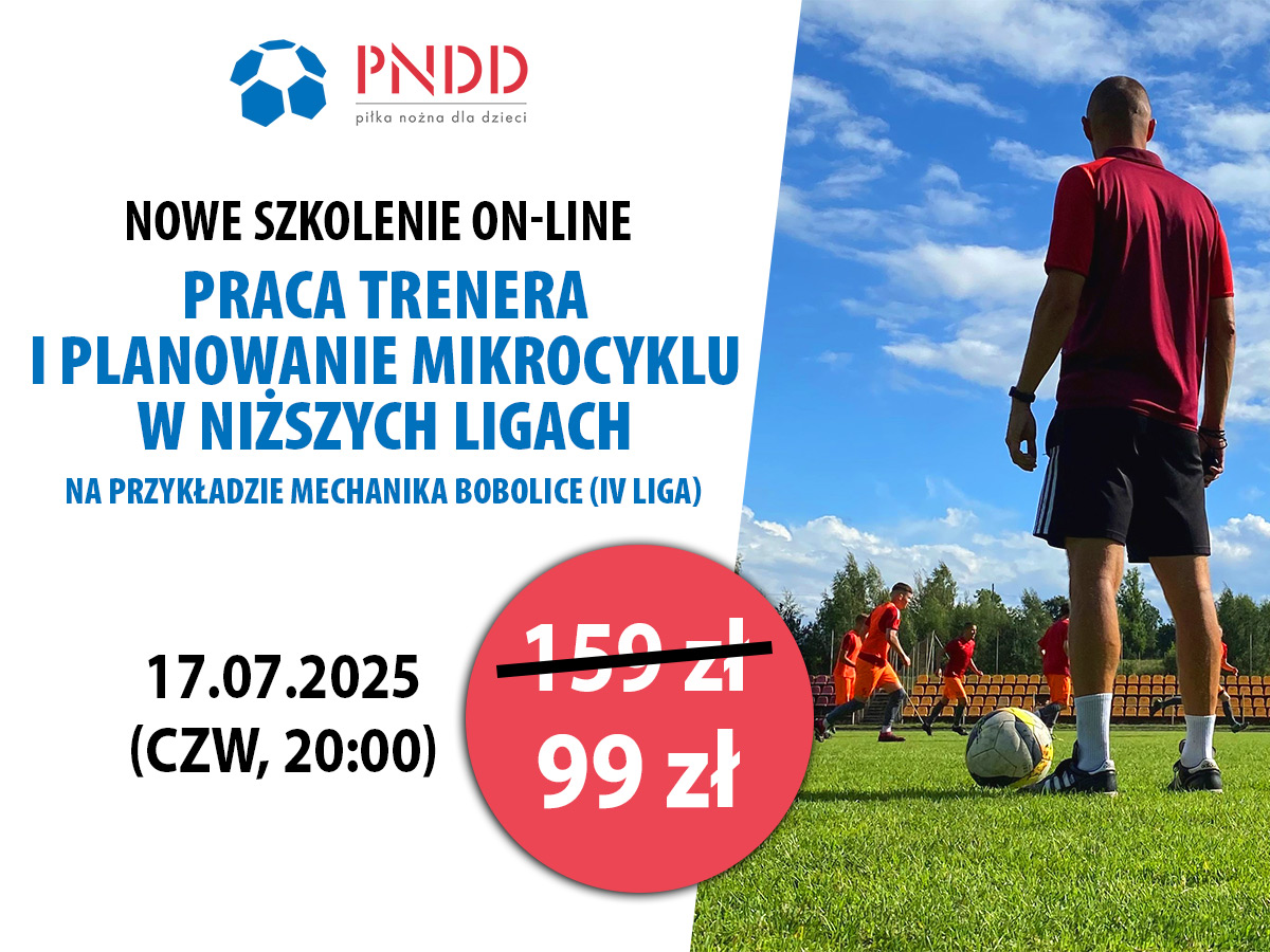 Takie wątki wyjaśnimy na szkoleniu “Praca trenera i planowanie mikrocyklu w niższych ligach na przykładzie Mechanika Bobolice (IV liga)”. Jest ono skierowane do trenerów zespołów seniorskich, ale trenerzy pracujący w mniejszych klubach i miastach w grupach młodzieżowych (11-osobowej piłki) także znajdą tutaj wiele cennych informacji.